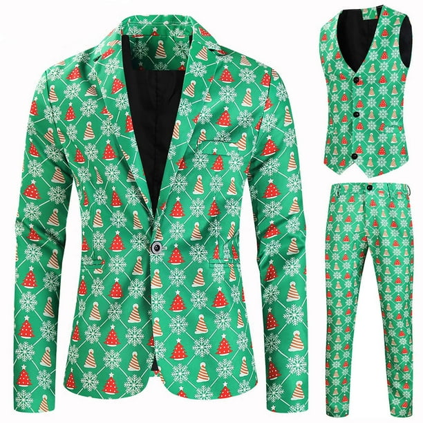 Felirenzacia Men S Christmas Printed Suit Jacket Vest Suit Pants Suit Three Piece Set Walmart Com